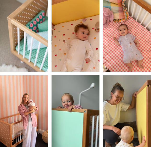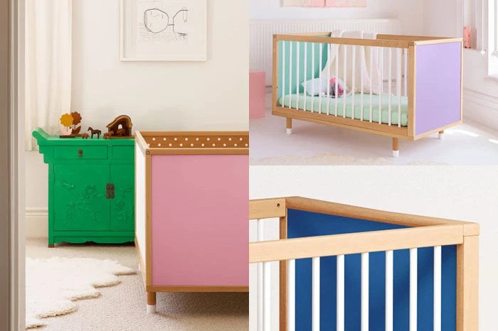 The Bold Baby Cot isn’t just a cot – it’s a canvas for creativity. With four double-sided panels in beautiful colours and patterns, you can transform its look in minutes to suit your style. It’s the first cot that encourages parents and children to shape and change their space together.