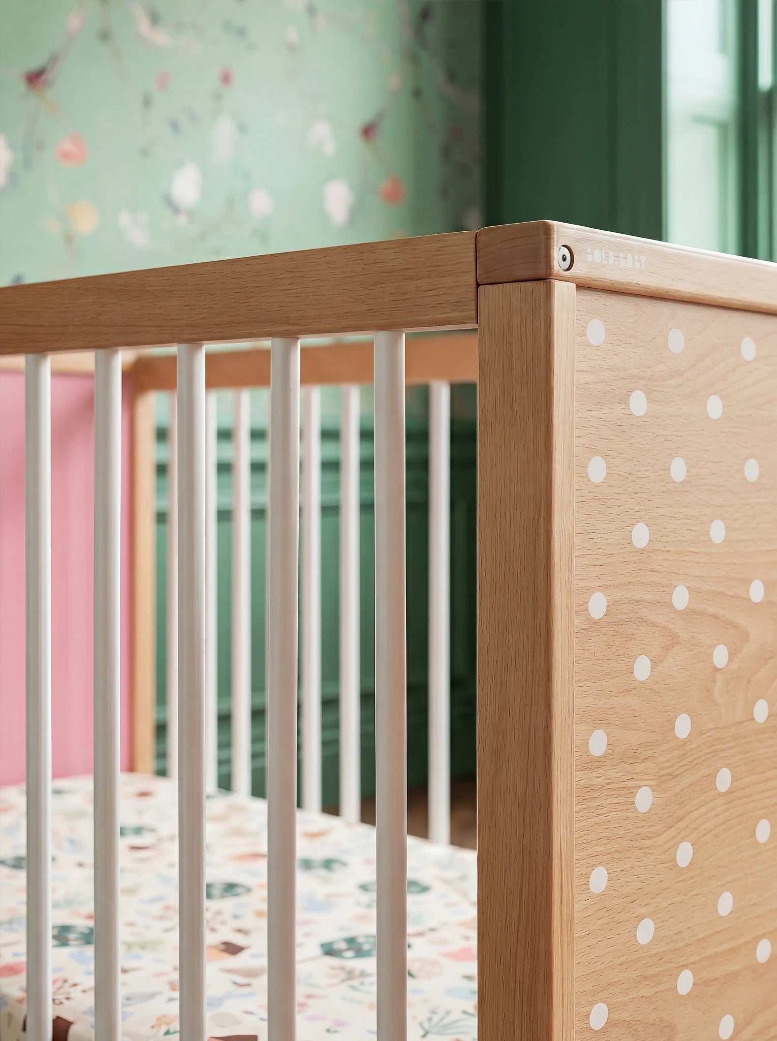 Bold Baby Cot - Pink and Green